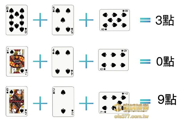 百家樂不論是兩張還是三張牌,點數計算其實十分簡單: